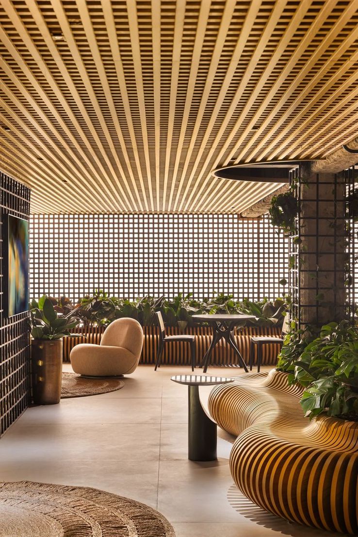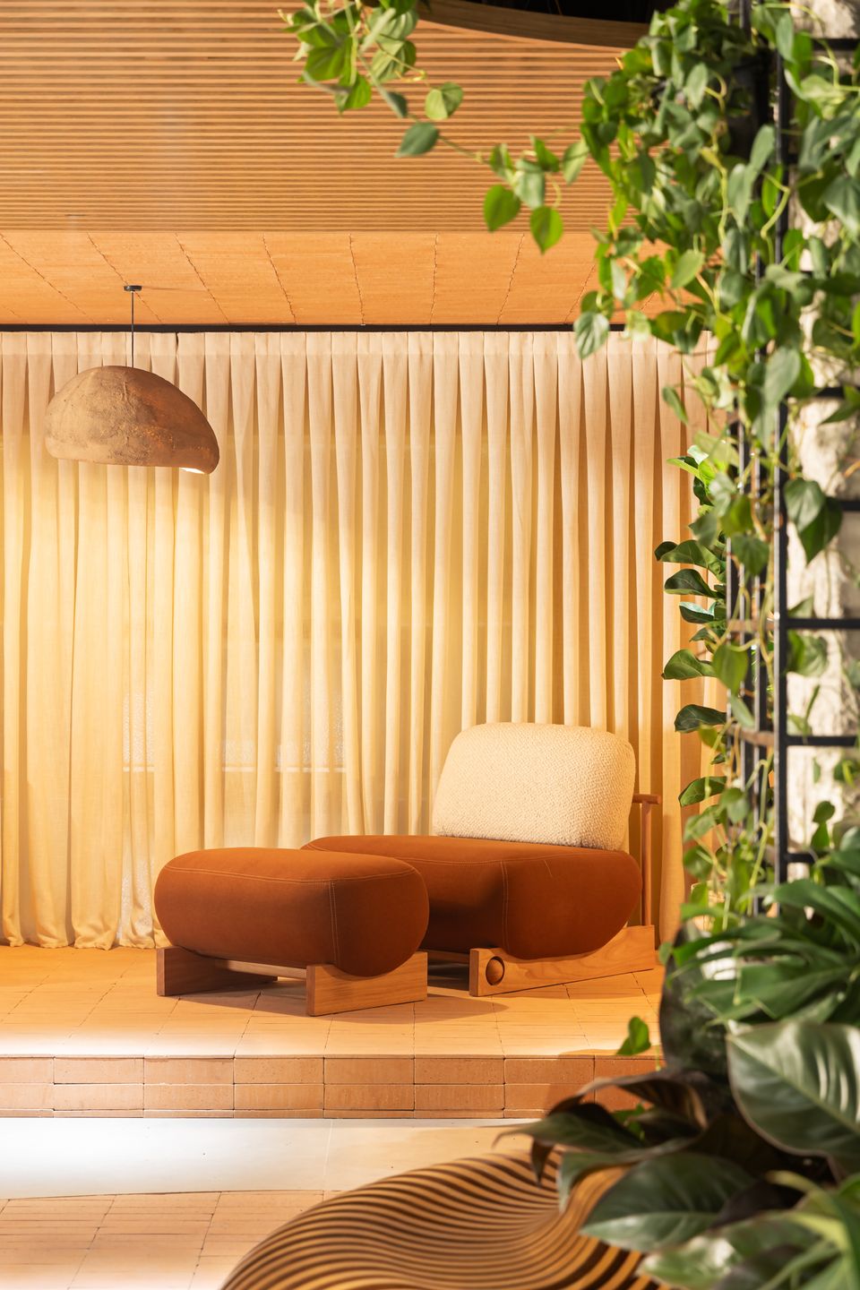 A planta fluida valoriza a multifuncionalidade e o conforto sensorial. “Este é um lugar para respirar, desacelerar e se reconectar. Um espaço que abraça, que acolhe, que inspira”, explica Lui. Aqui, o tema “Semear Sonhos” ganhou forma a partir do desejo de criar um ambiente onde as pessoas possam simplesmente estar — sem pressa, sem excesso, só sentindo.