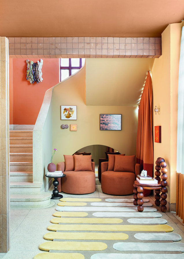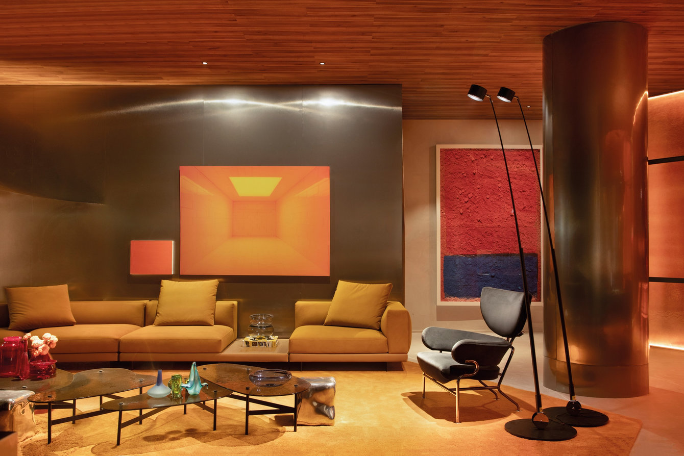 No caso da Casa Brastemp (Studio Roca), a escolha de tons como laranja e marsala reforça a identidade de marca por meio de uma estratégia cromática de branding sensorial, elemento cada vez mais valorizado na neurociência aplicada ao design. Cabe aqui destaque para o projeto de iluminação, em que elementos pontuais articulam os trajetos do ambiente.