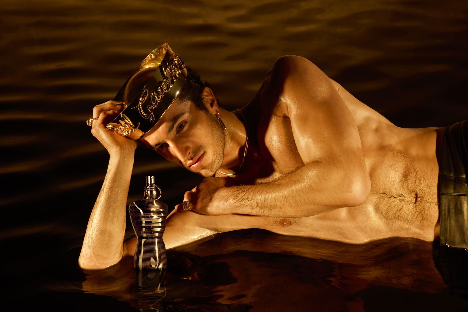 Totalmente imersa em ouro, a famosa lata e o torso esculpido são revelados sob uma nova luz impressionante. Mais do que uma fragrância, Le Male Elixir Absolu se torna um tesouro para se contemplar: uma joia preciosa que reflete a opulência cativante de sua essência.