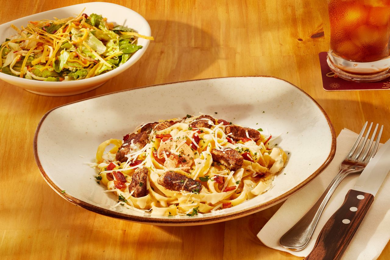 Principal: three cheese pasta/ou chicken broccoli fettuccine Alfredo/ou chicken bacon cavatappi