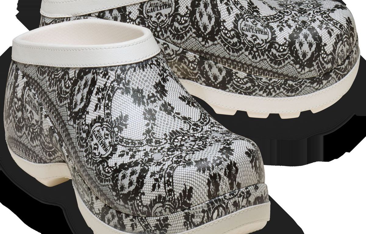 A coleção é um tributo aos códigos visuais de Gaultier, que aparecem em cada detalhe: do corset e do sutiã cônico, ícones consagrados nos anos 1990, ao uso do drapeado e das rendas gráficas personalizadas. O resultado é uma linha que traduz o espírito rebelde do estilista e a versatilidade da Crocs, incentivando quem usa a afirmar sua identidade com estilo.