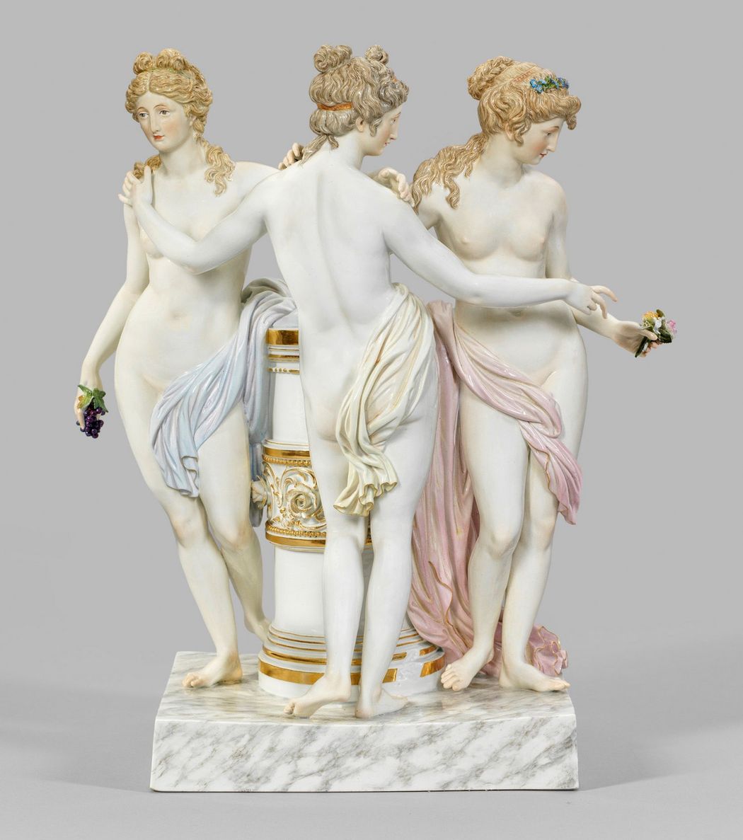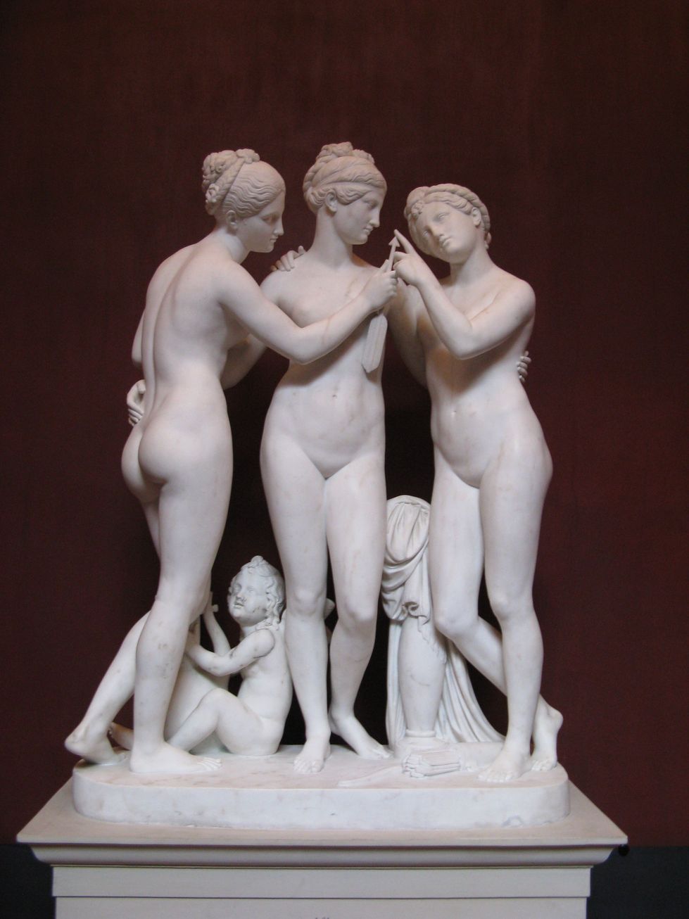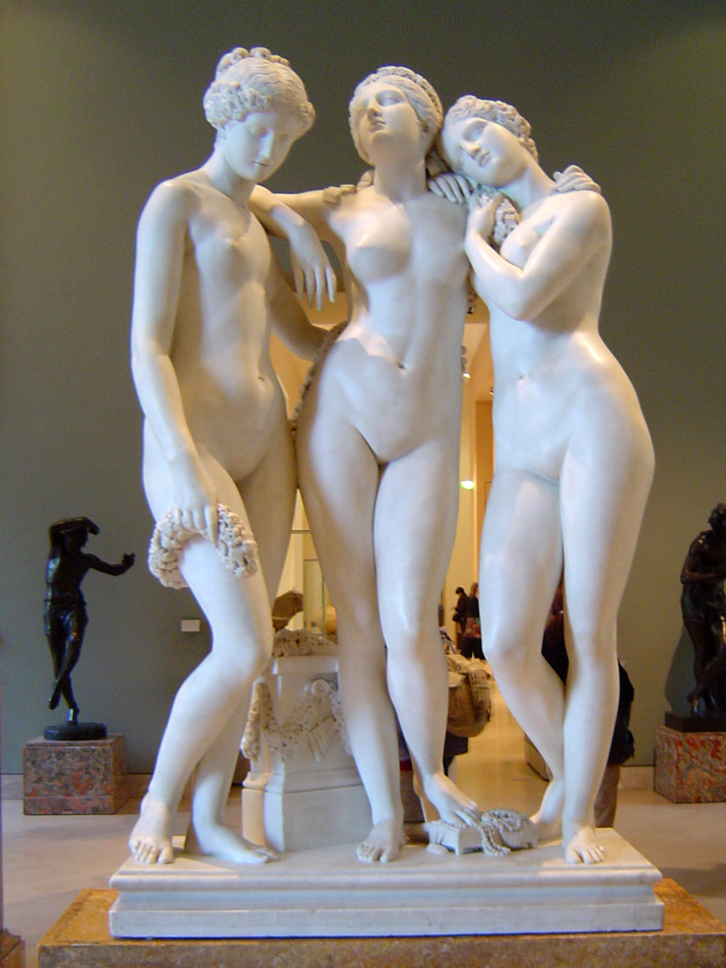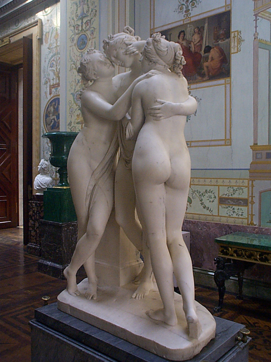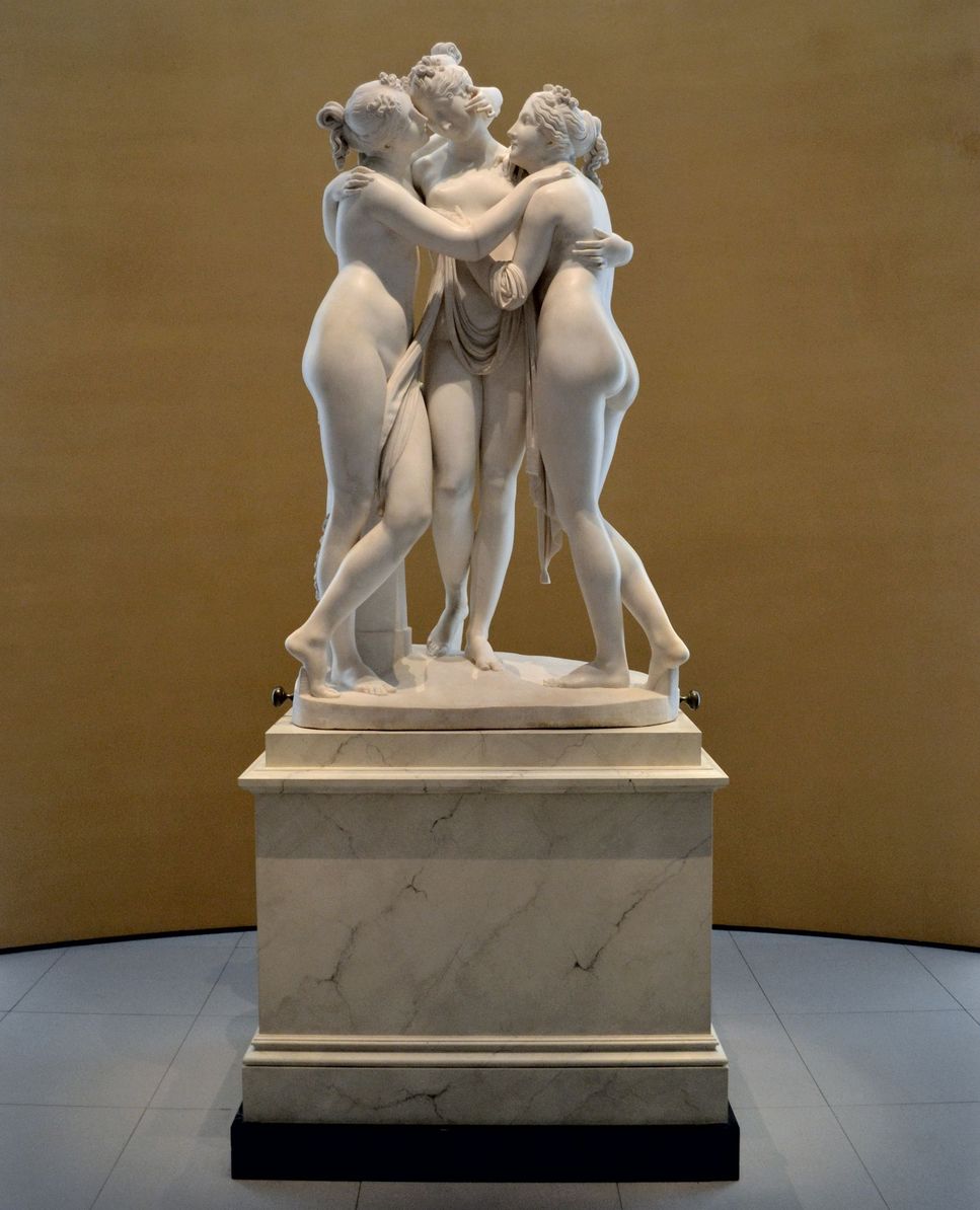 A mais famosa, porém, é a versão “As Três Graças”, de Antonio Canova, encomendada pela ex-imperatriz da França, Joséphine de Beauharnais. Produzida entre 1814 e 1816, ela é feita em mármore branco com 182 cm de altura e está exposta no Museu Hermitage, São Petersburgo, Rússia.