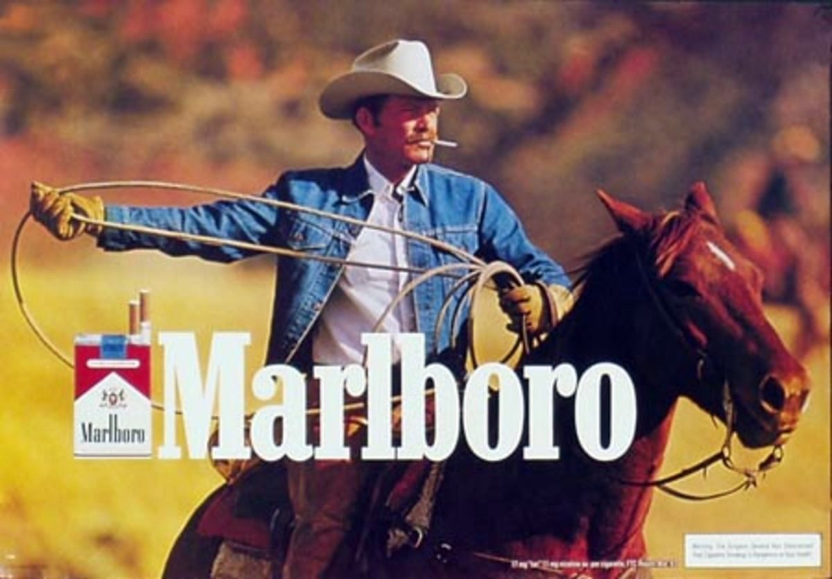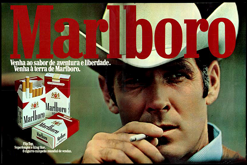 Em 1954, o publicitário Leo Burnett criou o “The Marlboro Man”. Era a imagem do homem corajoso e altivo, que usava chapéu ao lado de seu inseparável cavalo. Perpetuou a imagem da virilidade, individualidade e heroica do macho hétero, cis e branco estadunidense.