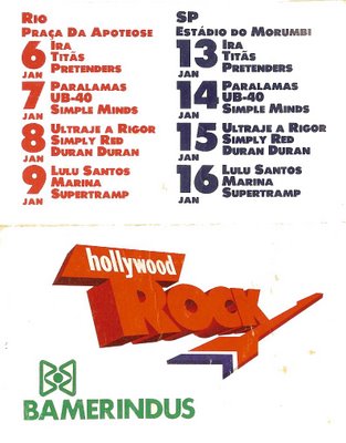 Em quatro noites de shows em São Paulo e no Rio de Janeiro, Supertramp, Duran Duran, Simply Red, UB40, Simple Minds, Pretenders, Ira!, Titãs, Paralamas, Ultraje, Lulu Santos e Marina Lima se apresentaram no Estádio do Morumbi e na Praça da Apoteose.