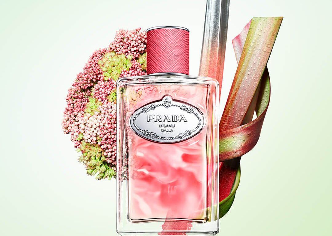 O Infusion de Rhubarbe dá continuidade a essa tradição, utilizando a técnica exclusiva da Prada chamada “esprit d’infusion” — uma base pura de aldeídos, almíscares e cítricos que intensifica a essência do ruibarbo.