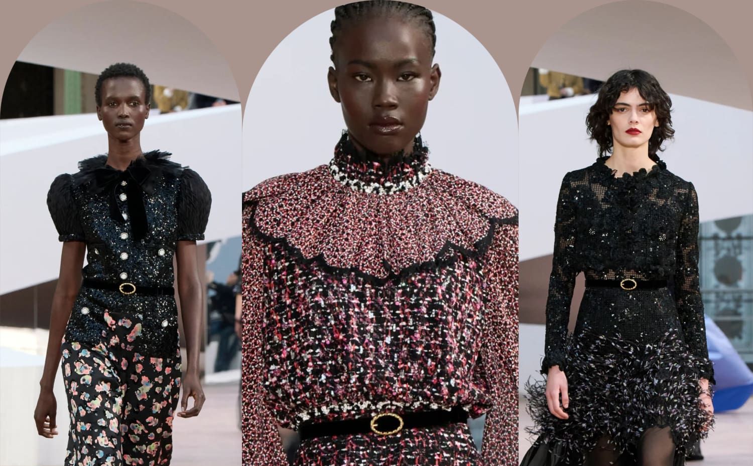 A Prada destacou a alfaiataria artesanal e o uso de materiais sustentáveis, enquanto a Chanel reafirmou sua tradição de bordados e tweeds feitos à mão, mantendo o clássico como referência atemporal.