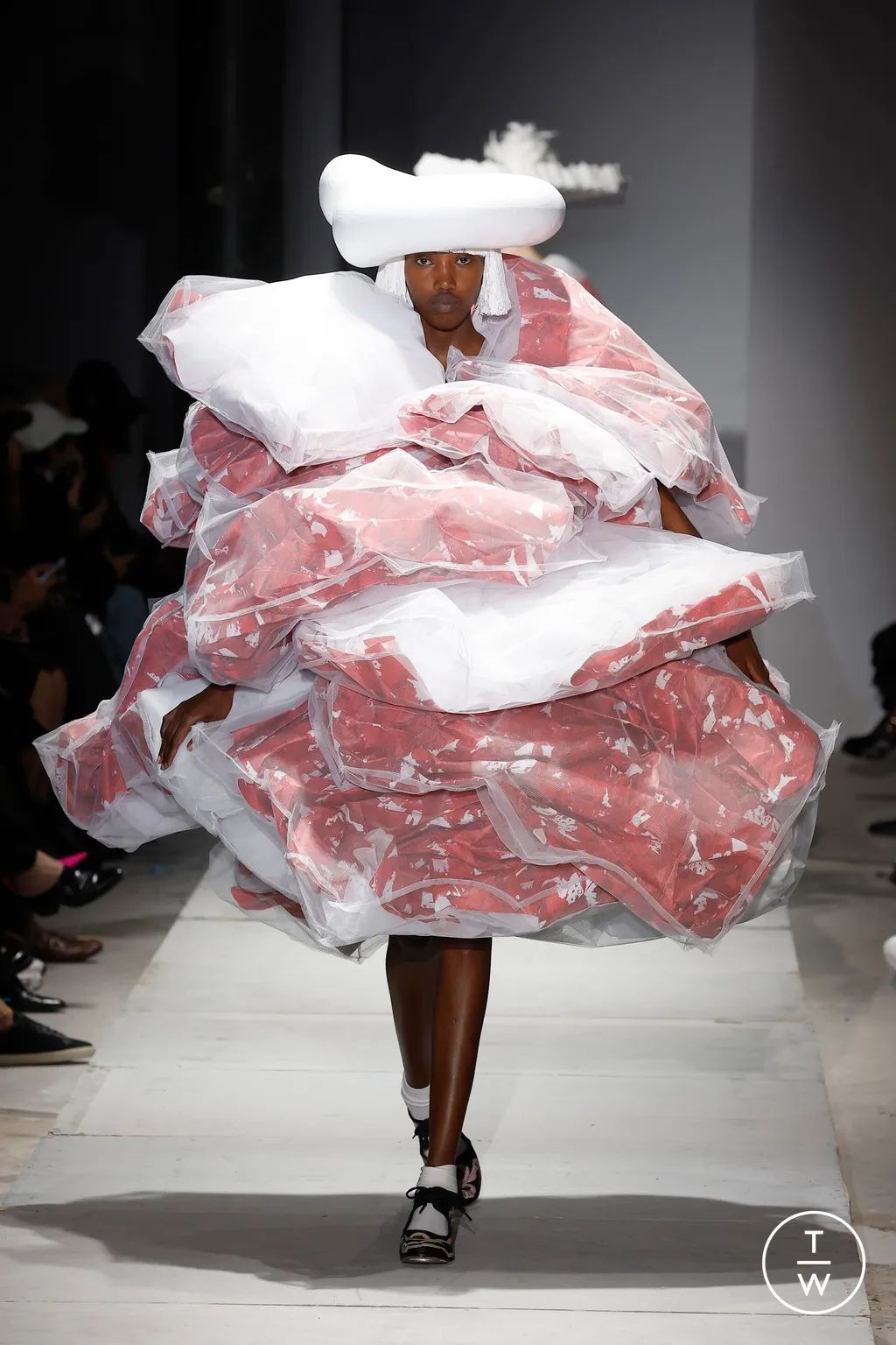 Além das casas europeias, marcas autorais como Comme des Garçons também se destacaram em 2025, explorando o artesanal em peças conceituais e experimentais, reforçando o valor do handmade como expressão artística.