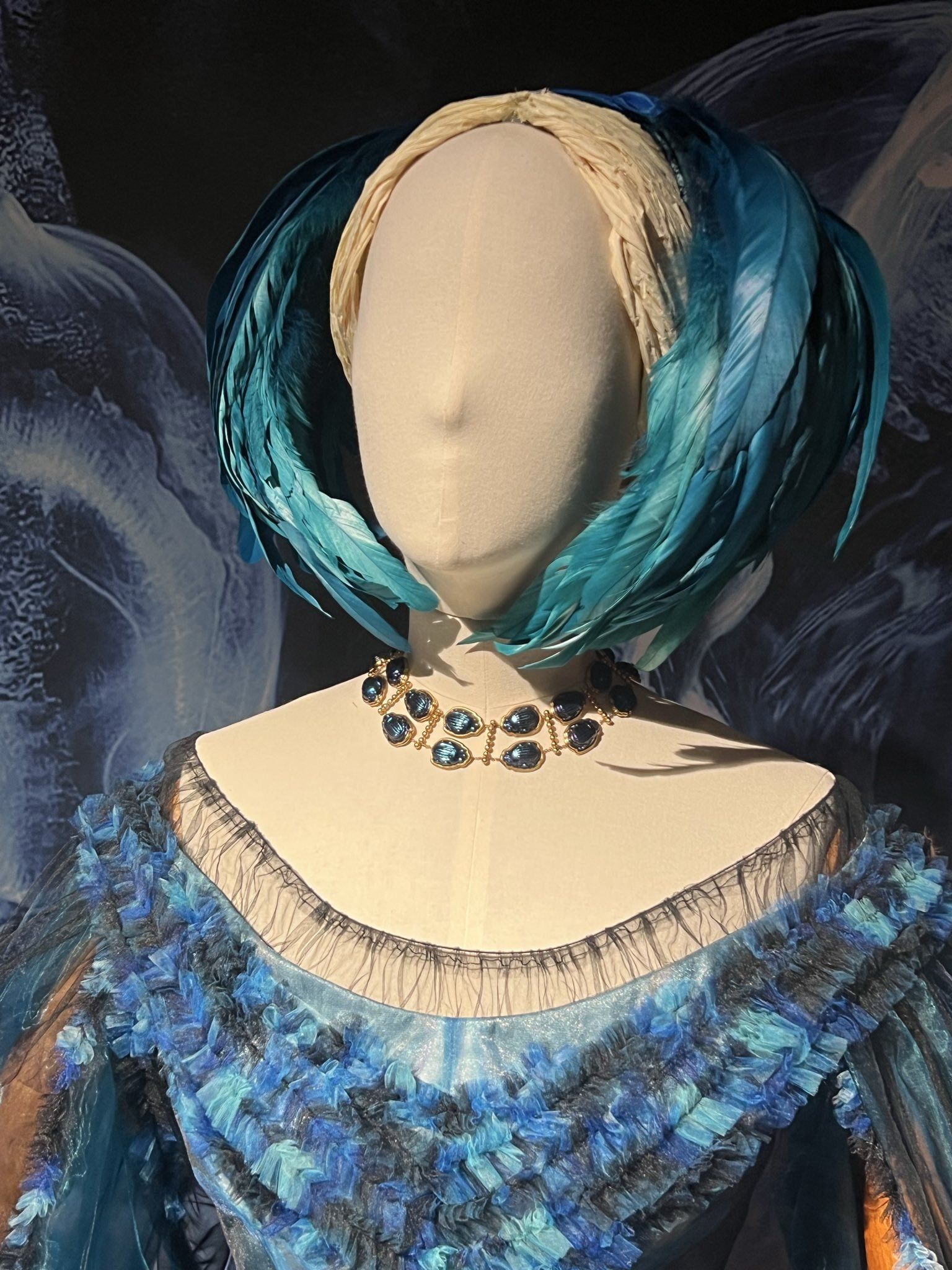 Esta escolha estética não apenas confere uma aura etérea à personagem, mas também dialoga com as tendências de alta-costura contemporâneas que exploram a beleza do imperfeito.