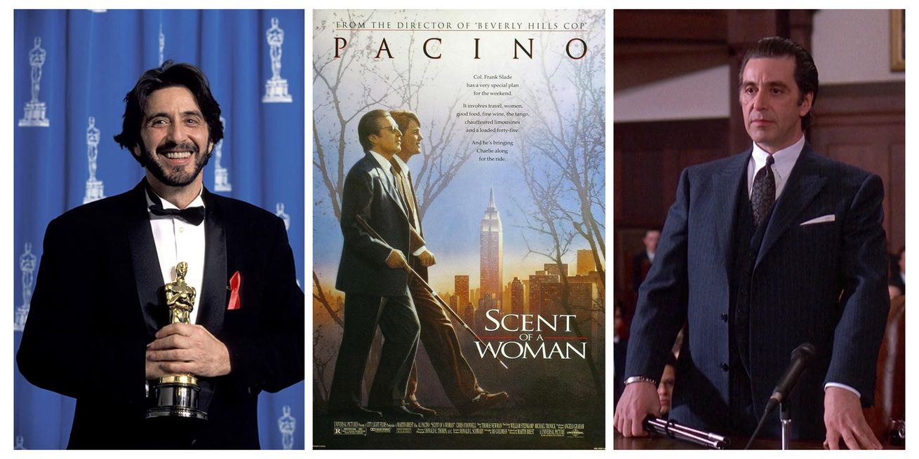Al Pacino em “Perfume de Mulher”, de 1993. Após mais de duas décadas de atuações seminais em “O Poderoso Chefão I e II”, “Um Dia de Cão” e “Serpico”, Pacino venceu por um filme chamado “veículo para o ator” – obra cuja estrutura narrativa existe apenas como um andaime para que o protagonista exiba grandes monólogos, explosões de temperamento e momentos de alta carga emocional (o famoso acting). Historiadores classificam esta vitória como um “prêmio de consolação” ou correção histórica. Sua performance, marcada por maneirismos e bordões ruidosos, triunfou sobre a interpretação monumental de Denzel Washington em “Malcolm X”, considerada uma das transformações mais perfeitas da década.