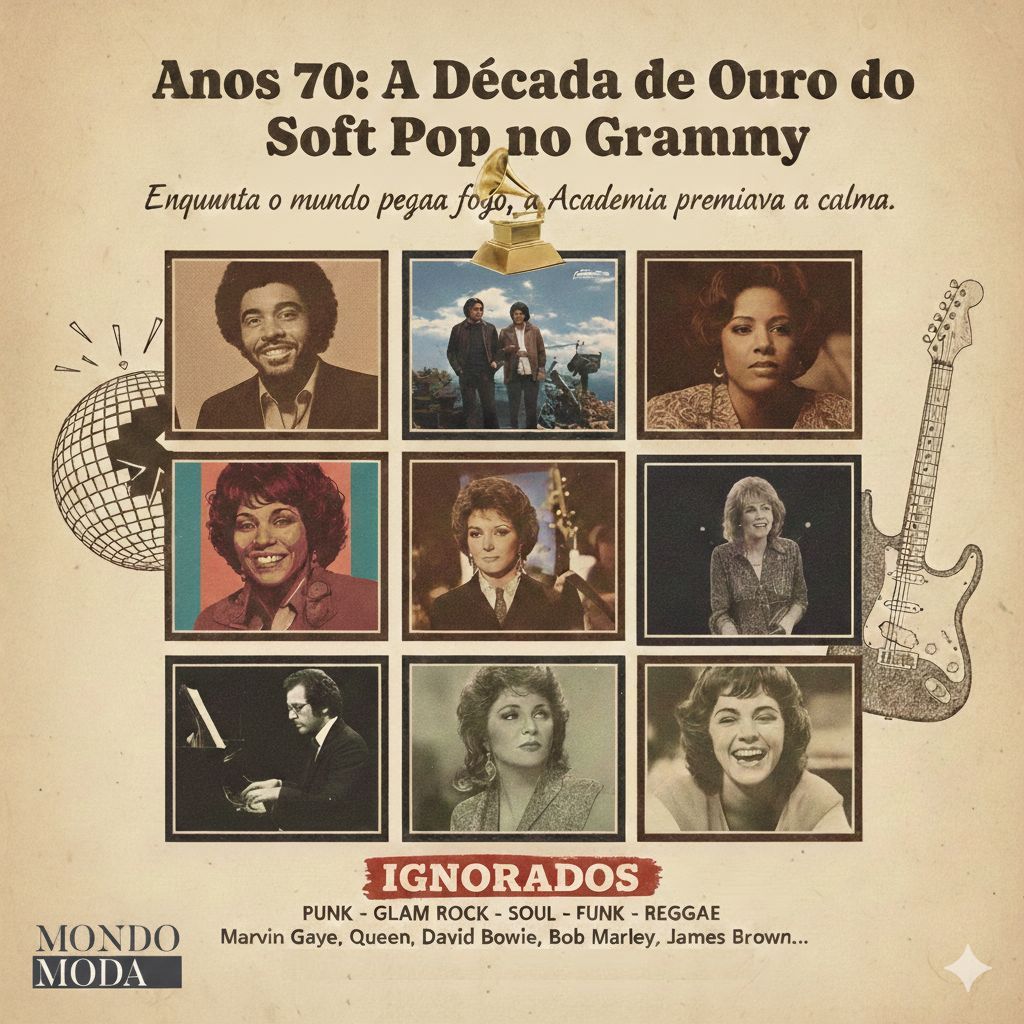 A década de 1970 consolidou-se como o refúgio em torre de marfim da Academia. Enquanto o mundo era incinerado pela urgência do Punk londrino, pelo Glam Rock andrógino de David Bowie e pela sofisticação arquitetônica do Queen com “Bohemian Rhapsody”, o Grammy preferia o isolamento acústico de estúdios luxuosos.