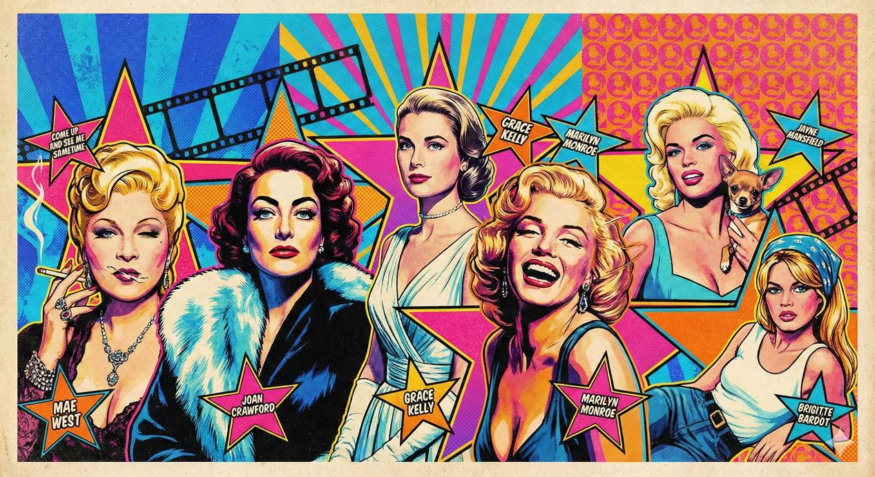 Mae West, Joan Crawford, Grace Kelly, Marilyn Monroe, Jayne Mansfield e Brigitte Bardot foram pioneiras nesse mecanismo, transformando a presença magnética em uma arma que anulava qualquer crítica sobre seus parcos recursos dramáticos.