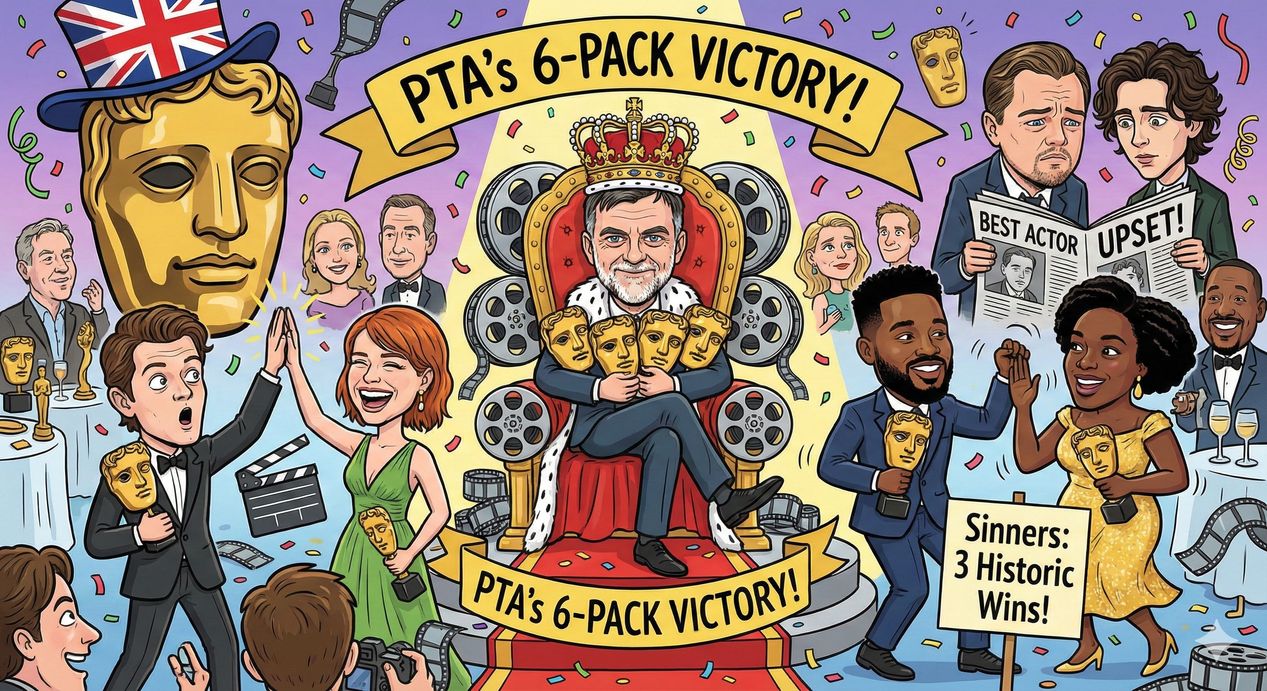 “Uma Batalha Após a Outra” dominou a 79ª edição do BAFTA Film Awards na noite de domingo, levando seis prêmios, incluindo Melhor Filme e Direção para Paul Thomas Anderson.