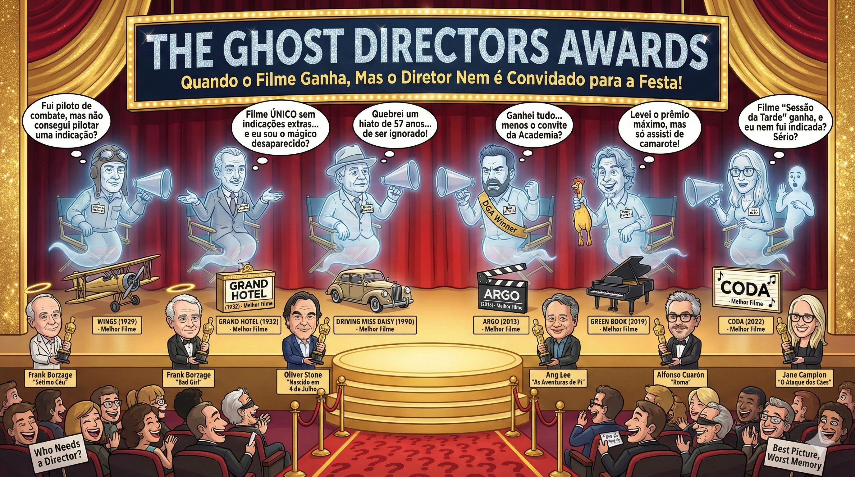 A antiga pergunta ecoa pelos corredores do Dolby Theatre: se o diretor é o capitão do navio, como pode a embarcação chegar ao porto da glória (vencer o prêmio máximo) sem que seu comandante seja sequer reconhecido como o melhor navegador? Pior ainda: como explicar, para a perplexidade geral, os casos em que o “capitão” nem ao menos foi convidado para a festa da própria indicação?