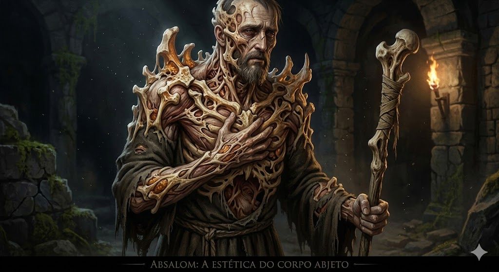 Absalom, a Estética do Corpo Abjeto: Despertou sua imortalidade em períodos de peste e privação. Sua mutação é uma das mais cruéis: uma osteogênese descontrolada que faz com que seus ossos cresçam para fora da pele, rompendo tecidos em um ciclo contínuo de dor e regeneração.