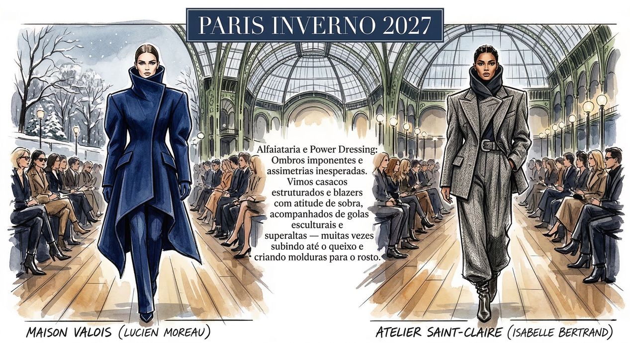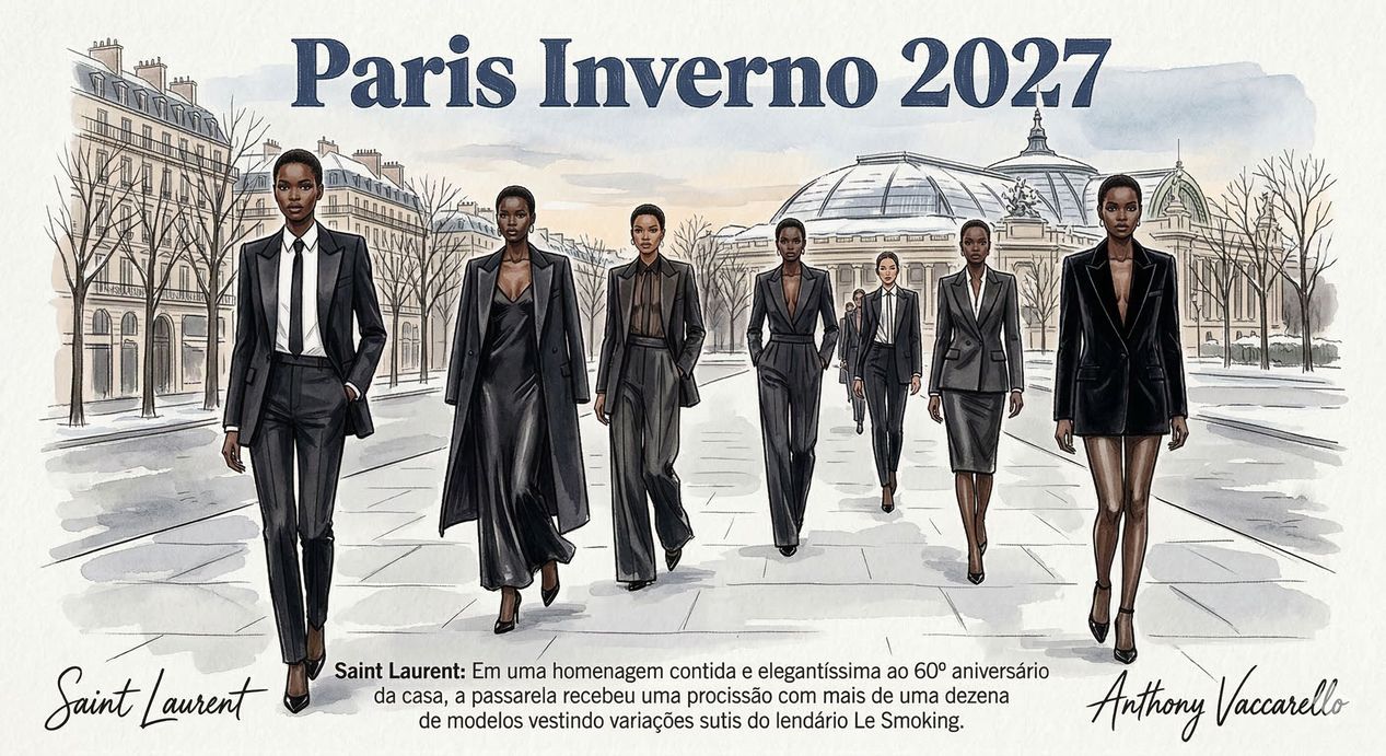 A recém-encerrada Semana de Moda de Paris, focada no Outono/Inverno 2026-2027, entregou uma temporada de fortes transições e um foco absoluto na excelência da construção das peças.