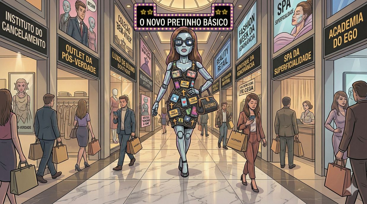 Esqueça a seda italiana ou o corte impecável da alfaiataria britânica. O acessório mais onipresente nas vitrines sociais — e o preferido da classe média que se acha “consciente” — é a alienação.