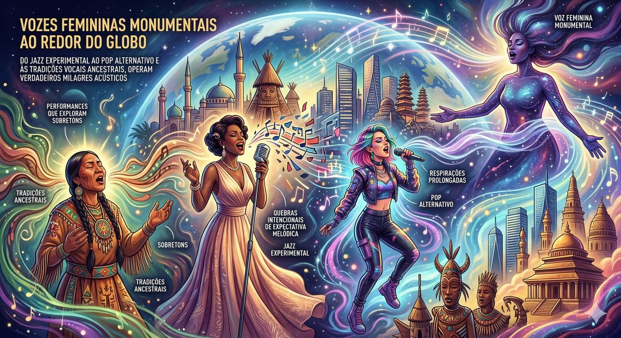 Vozes femininas monumentais ao redor do globo, do jazz experimental ao pop alternativo e às tradições vocais ancestrais, operam verdadeiros milagres acústicos. Pense em performances que exploram sobretons, respirações prolongadas, quebras intencionais de expectativa melódica. O domínio da respiração diafragmática, o controle de ressonância e a afinação extrema criam uma experiência quase física no ouvinte.