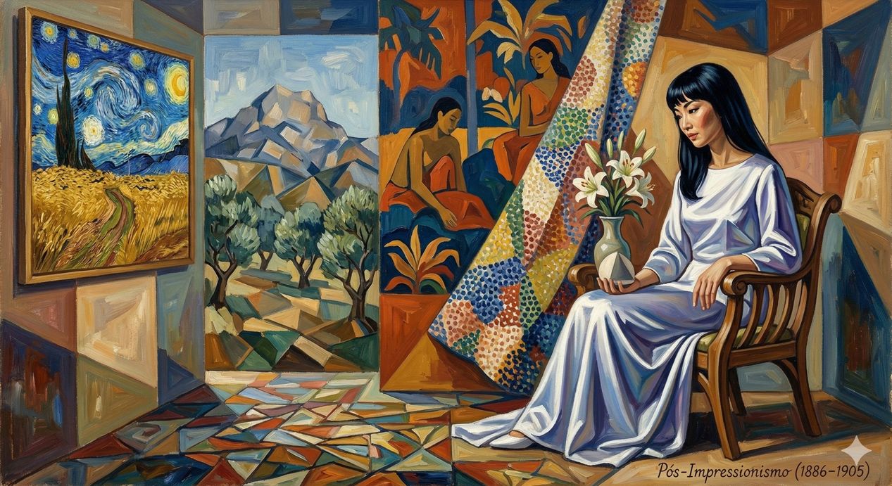 A Proposta: Ir além da luz superficial. Buscar a estrutura (Cézanne), a emoção subjetiva (Van Gogh) e o simbolismo da cor (Gauguin).