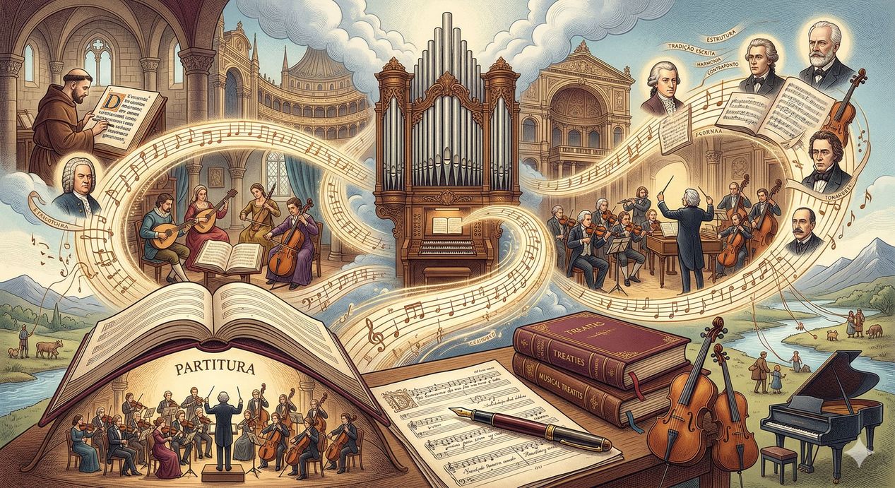 Antes de seguirmos, é fundamental fazer uma ressalva. A linha do tempo que vamos explorar foca na música erudita ocidental — ou seja, na tradição europeia.