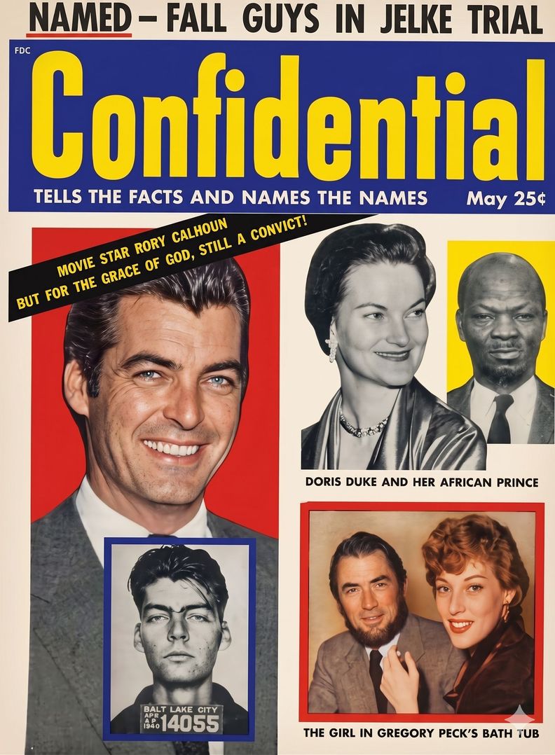 Rock Hudson: A revista obteve provas concretas sobre a homossexualidade do maior galã da época. Para evitar a ruína de seu cliente mais lucrativo, o empresário Henry Wilson firmou um acordo sombrio com os editores: entregou os segredos íntimos de outros dois atores menos conhecidos — incluindo o passado criminal do ator Rory Calhoun — em troca do silêncio sobre Hudson. Quando adolescente, ele esteve envolvido com roubo de automóveis, fugas e outros delitos, como condução ilegal. Aos 20 anos, ele foi condenado e preso.