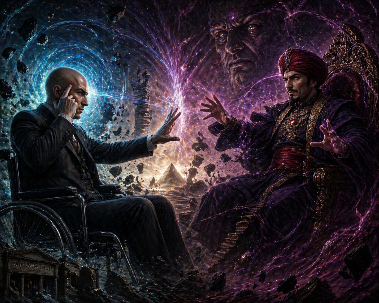 O confronto não ocorreu com punhos, mas no Plano Astral, a dimensão da consciência pura onde o pensamento se torna realidade física. Foi uma batalha de vontades. Farouk tentou consumir a mente de Charles, mas a disciplina mental e a convicção ética do herdeiro provaram ser superiores.