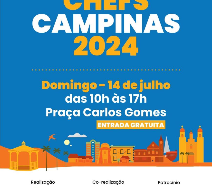 “Campinas – 250 Anos” é o tema do Chefs Campinas 2024, que acontece no domingo, 14 de julho, das 10h às 17h, na Praça Carlos Gomes. A 11ª do evento contará com 22 restaurantes e 09 cervejarias do Polo Cervejeiro da Região Metropolitana. O Chefs Campinas é realizado pelo Campinas e Região Convention & Visitors Bureau (CRC&VB) e correalizado pela Prefeitura Municipal de Campinas, por … Continuar lendo Chefes na Praça Carlos Gomes no domingo, 14 de julho
